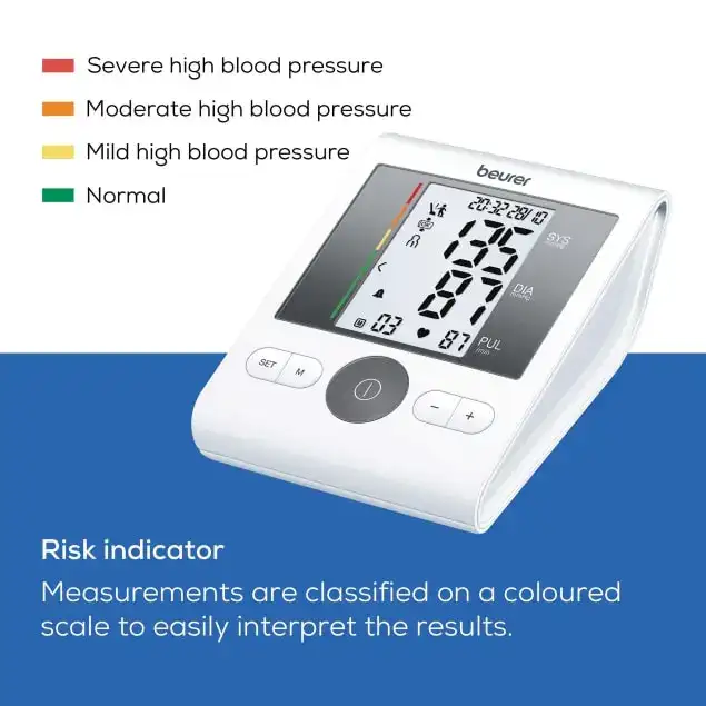 واحد للجميع. يحتوي جهاز مراقبة ضغط الدم على صفعة عالمية مناسبة أيضًا لمحيط أكبر للذراع يصل إلى 42 سم. يمنحك التحكم في موضع الكفة المدمج يقينًا إضافيًا بشأن دقة قيم ضغط الدم المقاسة خلال كل قياس.
