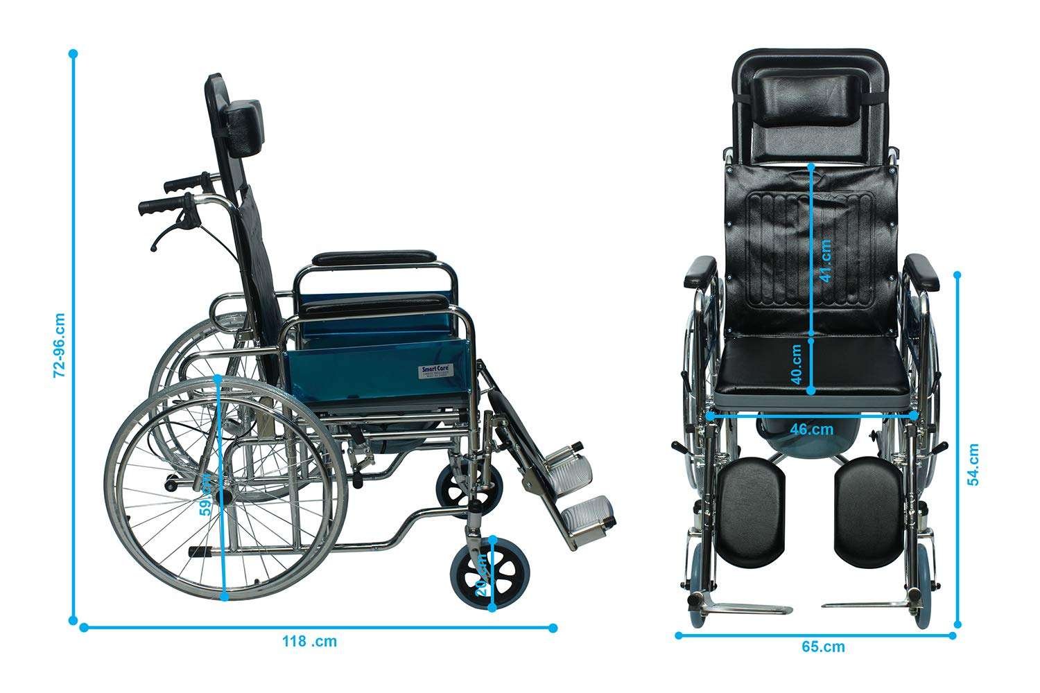 - تصميم متعدد الوظائف: يجمع بين سهولة الحركة ككرسي متحرك تقليدي ووظيفة كرسي الحمام مع وعاء قابل للإزالة والتنظيف، مما يجعله مثالياً للاستخدام اليومي.