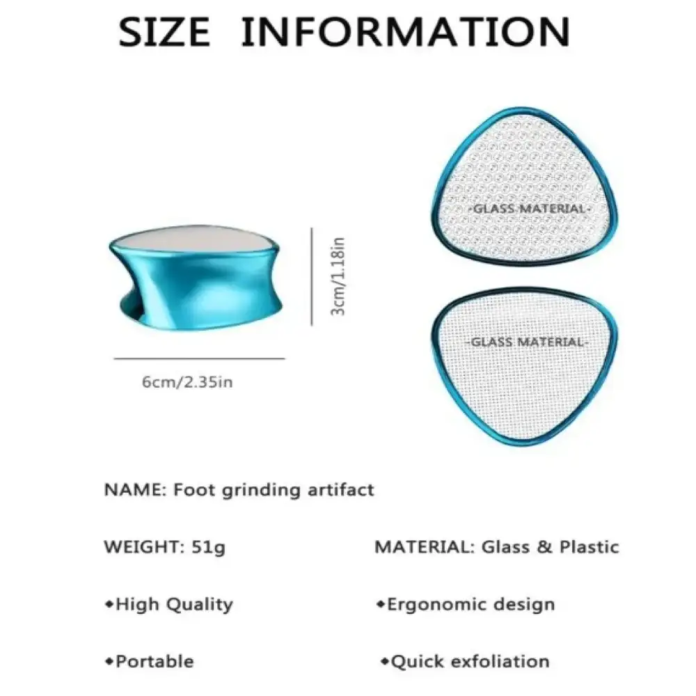 - مبرد قدم زجاجي ومنظف للكعوب: أداة سريعة وسهلة لإزالة الجلد الميت وتنعيم الكعوب المتشققة، مما يمنح قدميكِ مظهرًا صحيًا وجذابًا.