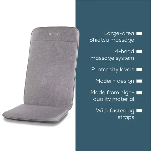 مع غطاء مقعد التدليك شياتسو من بيورر MG 202، يمكن تحويل أي مقعد إلى واحة من الاسترخاء. يوفر نظام التدليك ذو الرؤوس الأربع تدليكًا شاملاً على طول ظهرك بالكامل. كما أن غطاء المقعد خفيف للغاية، مما يجعله سهل النقل والاستخدام في أي مكان تريده، أينما كنت.