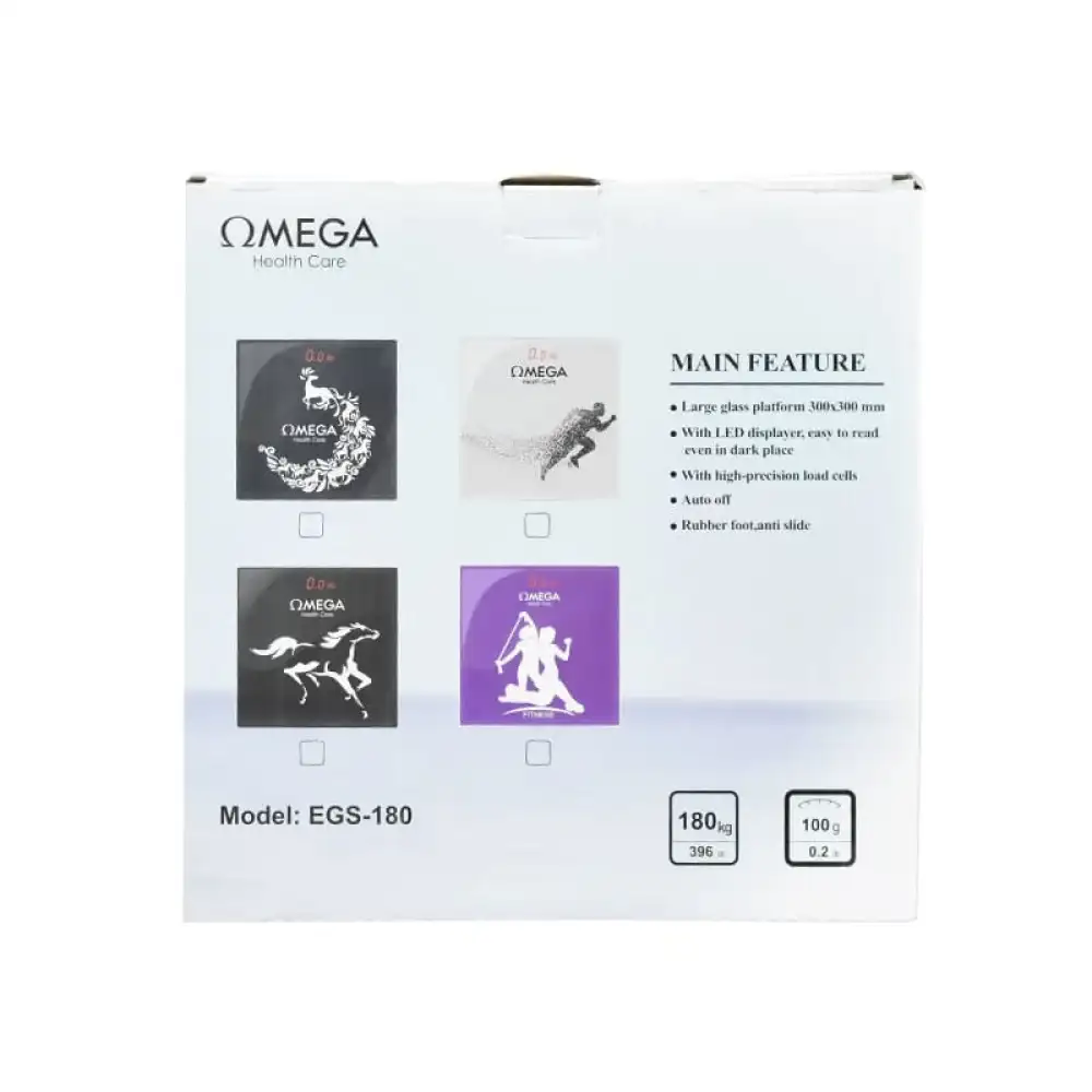 ميزان أوميجا الرقمي هو أداة دقيقة وموثوقة لقياس وزن الجسم. يتميز بتصميمه الأنيق والحديث، وسهولة الاستخدام، والدقة العالية في القياس.