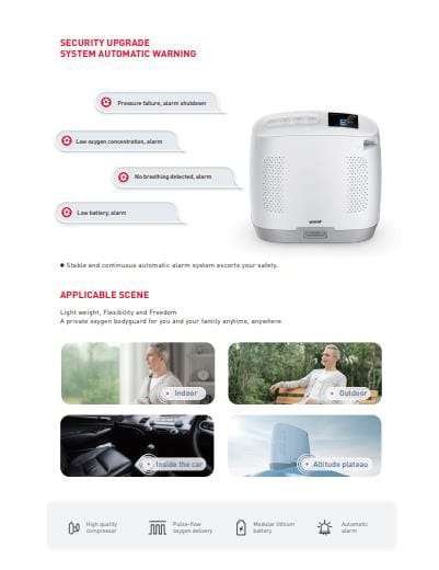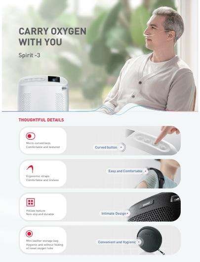 جهاز توليد الأكسجين المحمول Yuwell Spirit-3 هو جهاز طبي مصمم لتوفير الأكسجين الإضافي للأشخاص الذين يعانون من مشاكل في الجهاز التنفسي. يتميز هذا الجهاز بالعديد من الميزات التي تجعله خيارًا جيدًا للمرضى الذين يحتاجون إلى العلاج بالأكسجين في المنزل أو أثناء التنقل.